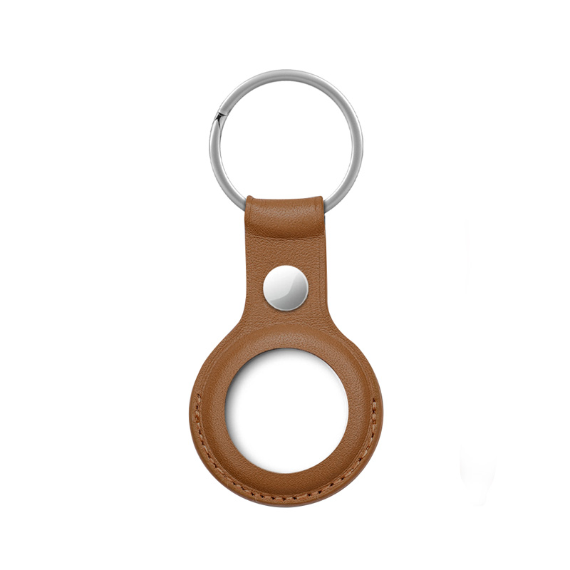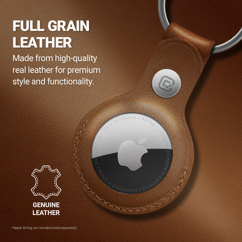 Crong Leather Case with Key Ring - Leather protective case key ring for Apple AirTag (Brown)