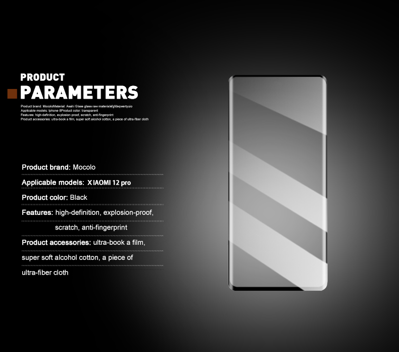 | Item name | Mocolo 3D 9H Full Glue - Full screen protection glass for Xiaomi 12 Pro (Black) |