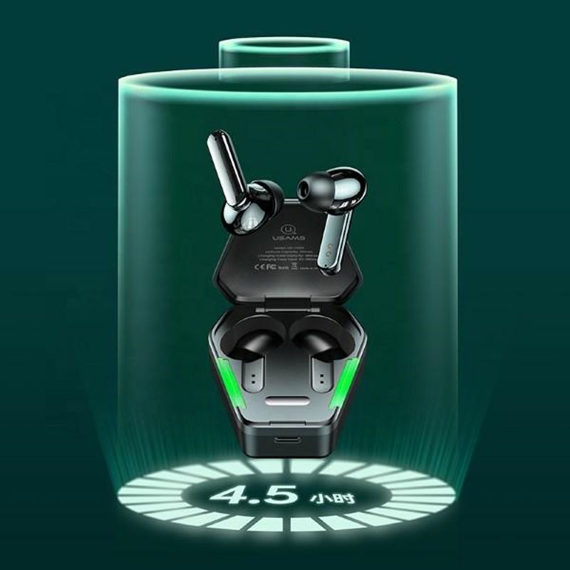 Usams JY Series wireless headset with a gaming look. Ensure comfort and stability while gaming and you won't miss any action thanks to the 3D stereo surround module. The included 380 mAh charging station, which is a power bank and charger for the headset. Product features: - Material: ABS - Bluetooth version: 5.0 - Communication range: up to 10 metres - Speaker diameter: 8mm - Sensitivity: 103 ± 3db - Frequency response: 20 Hz ~ 20 KHz - Weight of headphones: approx. 3.4g x2 - Headphones battery capacity: 40 mAh - Playback time: approx. 4.5 hours (at 80% volume) - Battery capacity of case: 380 mAh - Standby time: approx. 150h