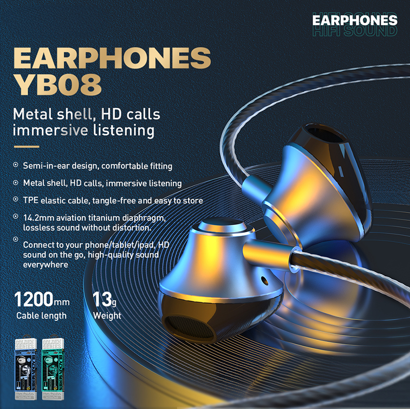 Los auriculares WEKOME YB08 Blackin Series impresionan por su diseno y precisión artesanal. Su diseno ergonómico y de diseno hace que sean cómodos y prácticos de llevar, al tiempo que les da un aspecto único y singular.