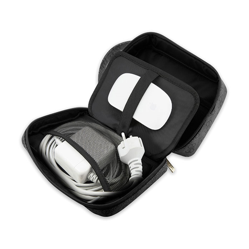 It is ideal for travelling. It allows you to have at hand all the electronic accessories you need for short or long journeys. The organiser has several internal pockets to keep everything tidy and prevent stored accessories from moving around. Comfortable handle.