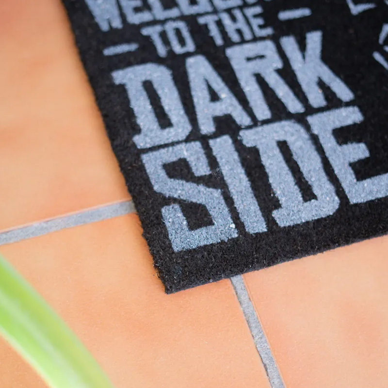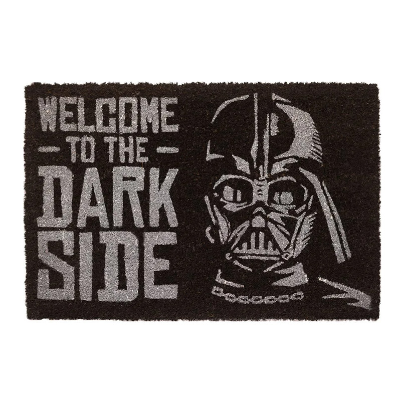 The doormat's original design depicting iconic elements of the Star Wars universe, including the inscription "Welcome to the Darkside" and the likeness of the Lord of the Sith, is not only eye-catching but also provides excellent functionality. With a non-slip surface and dimensions of 40 x 60 cm, the doormat will be perfect in front of your door. Now you can welcome your guests in the dark and epic style characteristic of this cult saga.