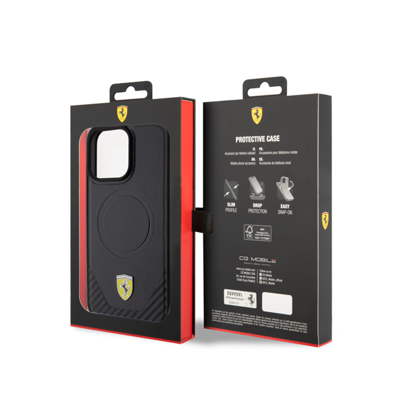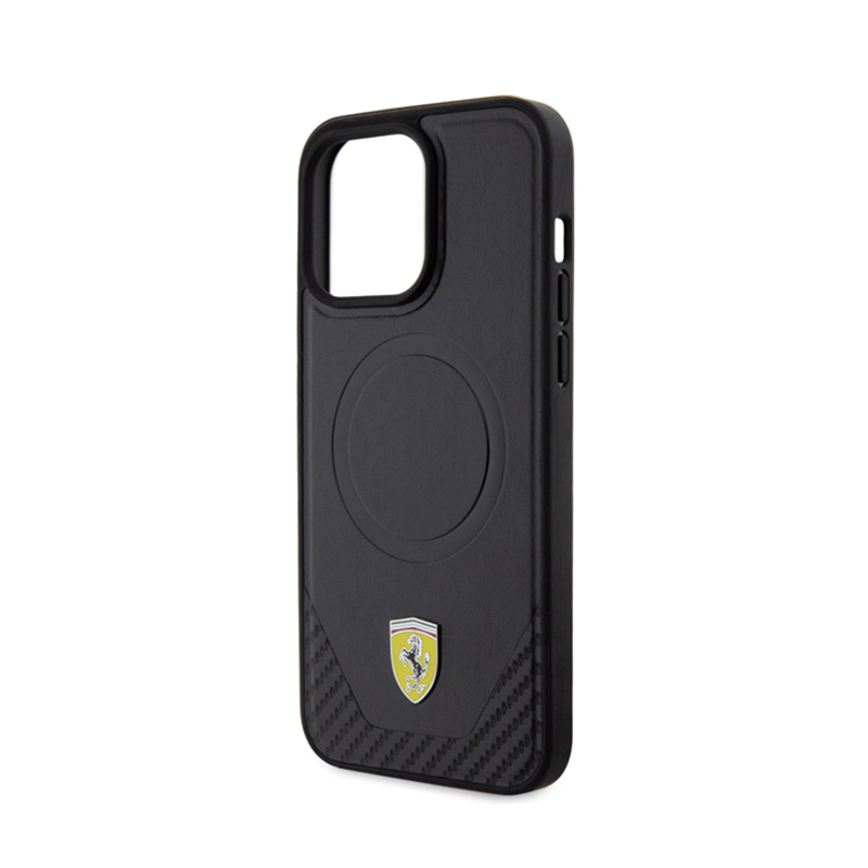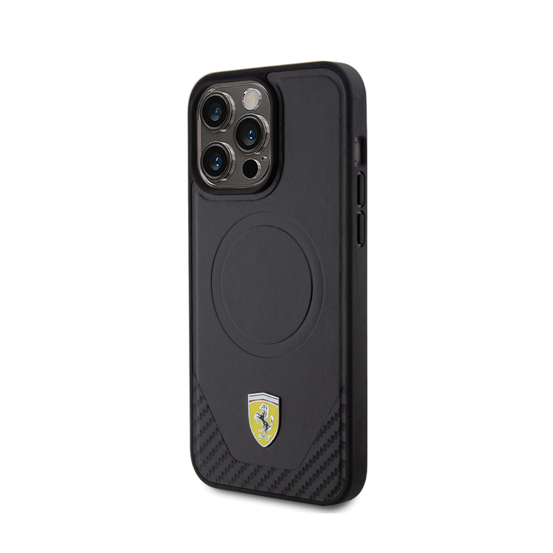 Ferrari Carbon Metal Logo MagSafe - Etui iPhone 15 Pro Max (czarny)