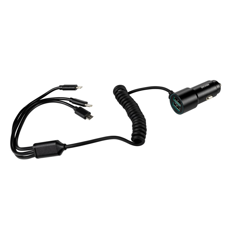 Numele articoluluiWEKOME WP-C44 Pop Digital Series - Car charger with integrated 3-in-1 USB-C / Lightning / Micro USB + 2x USB-A 33W cable (Black)