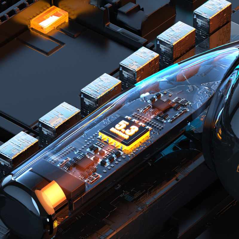 Auriculares intrauditivos WEKOME VB06 True Wireless con estuche de carga en forma de nave espacial con capacidad de 250mAh. Los auriculares utilizan la nueva versión de la tecnología inalámbrica Bluetooth 5.3, que reduce retrasos, interferencias y mejora la duración de la batería.