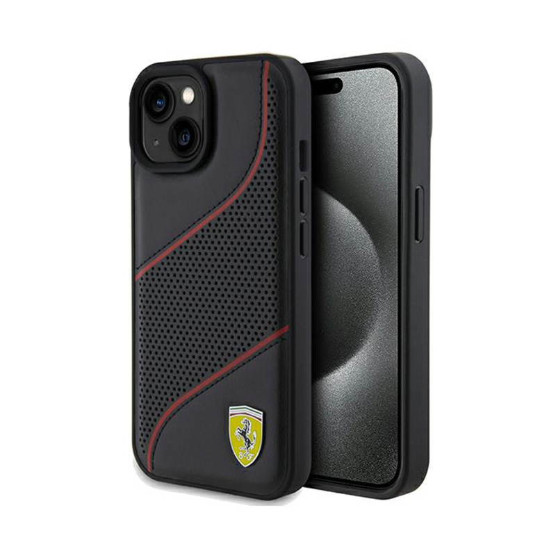 | Termék név | Ferrari Perforated Waves Metal Logo - iPhone 15 Case (Black) |
