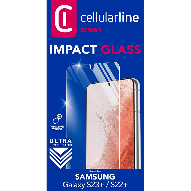 Cellularline Impact Glass is a reliable protective layer made of real tempered glass, specially developed for the Samsung Galaxy S23+ / S22+. It is the perfect solution that not only protects the screen, but also retains the properties of the screen without any changes.