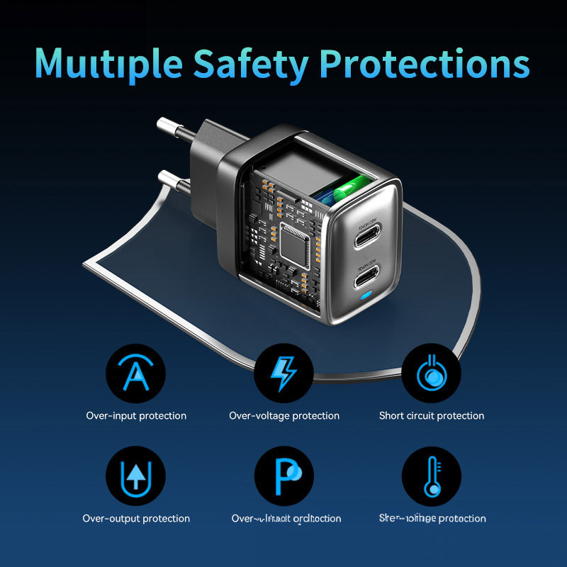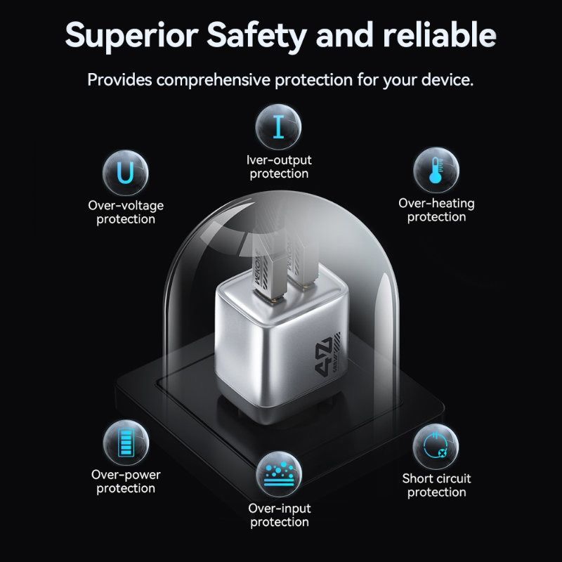 The semiconductor (gallium nitride) used in the WP-U02 makes the charger use energy efficiently (it does not heat up significantly) making it greener and safer than traditional chargers.