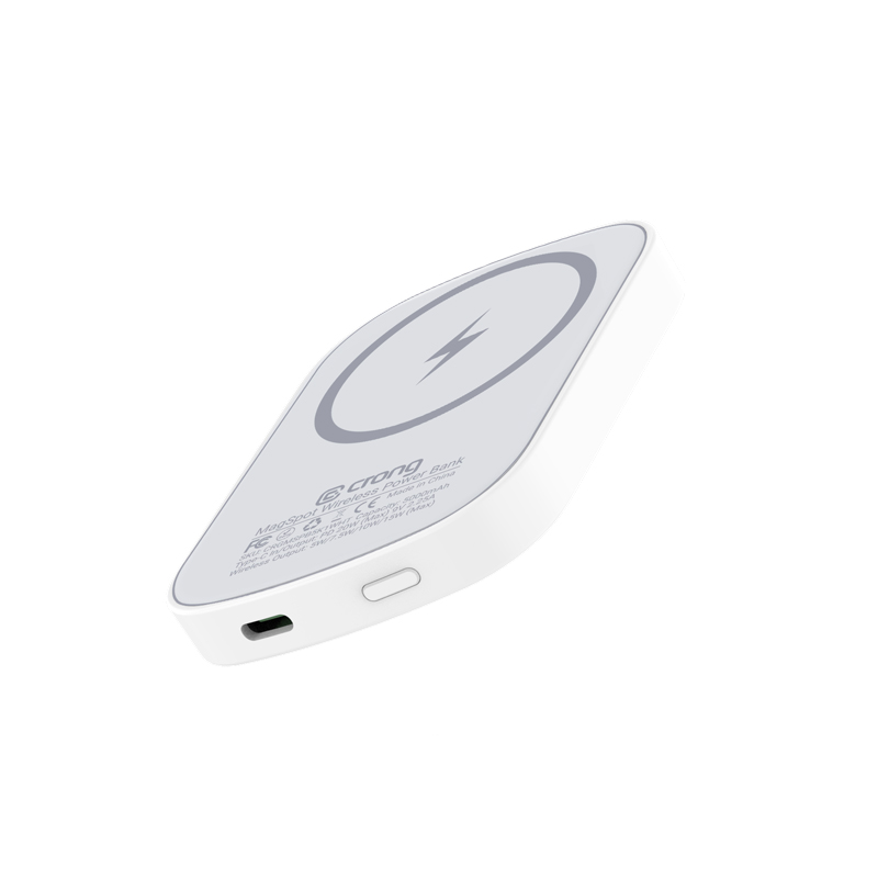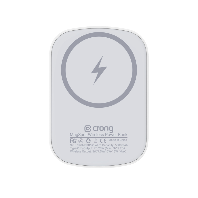 Crong MagSpot Power Bank - bezdrátová ultra tenká power banka s MagSafe 5000mAh, USB-C 20W PD (bílá)