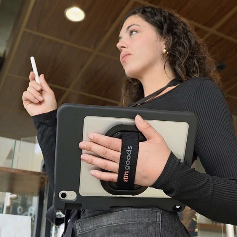 La STM Dux Swivel es una funda que lleva el trabajo con el iPad al siguiente nivel, proporcionando facilidad y eficacia de uso. Con un asa giratoria ajustable de 360°, permite ajustar perfectamente la posición del brazo y la muneca.