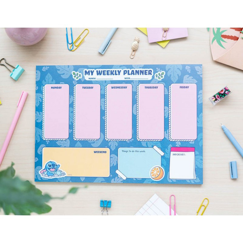 Weekly planner with the image of Disney Stitch characters. It has plenty of space for notes for each day of the week. The large A4 size and 54 sheets allow you to write down the most important events, reminders or shopping lists. Each page is decorated with a favorite motif.