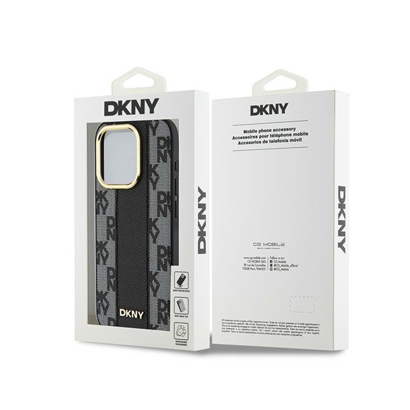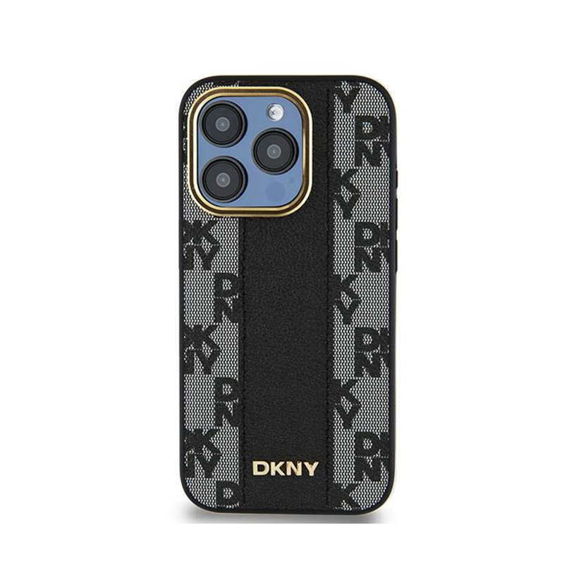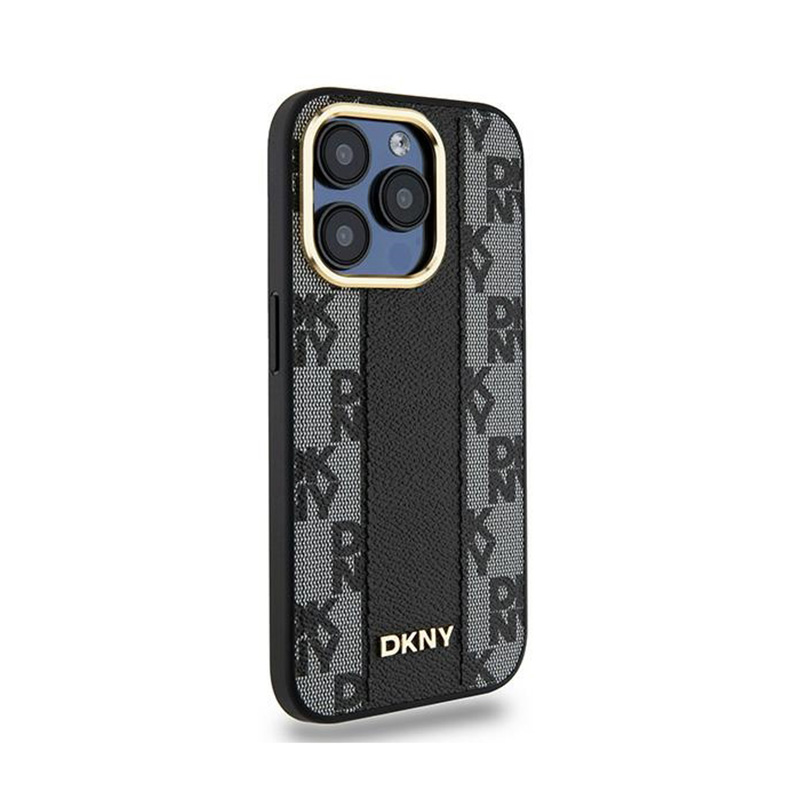 DKNY Leather Checkered Mono Pattern MagSafe - Etui iPhone 15 Pro (czarny)