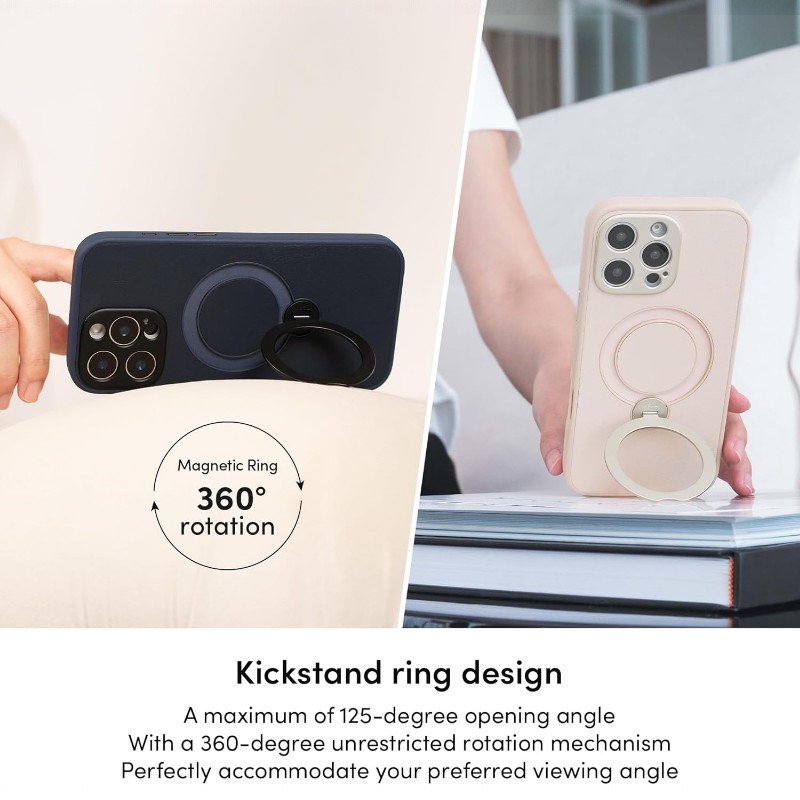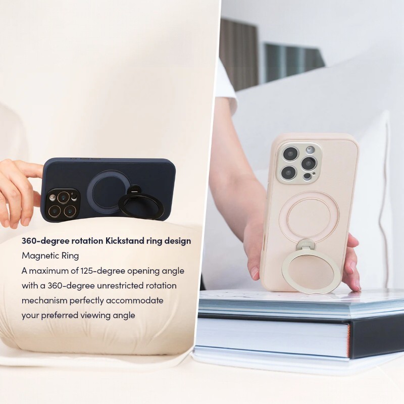 Die Moshi Kameleon MagSafe-Hülle kombiniert minimalistisches Design mit praktischen Lösungen und bietet Eleganz und Komfort für den täglichen Gebrauch. Mit dem um 360 Grad drehbaren Magnetring mit Standfuß können Sie bequem Videos ansehen, telefonieren oder freihändig im Hoch- oder Querformat arbeiten.