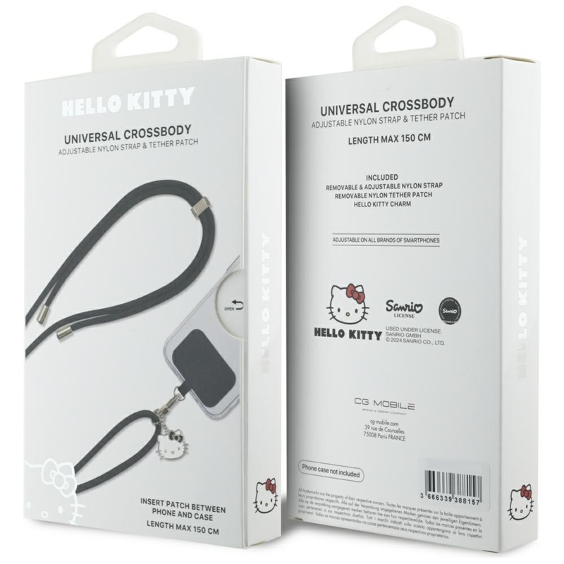 Dank der verstellbaren Länge von 150 cm kann der Gurt an Ihre Bedürfnisse angepasst werden: Er kann auf der Schulter, im Nacken oder in der Hand getragen werden. Hergestellt aus strapazierfähigem Nylonmaterial, ist es mit den meisten Handyhüllen kompatibel. Ergänzt wird das Set durch einen charmanten Hello Kitty Anhänger mit Schleife, der für einen einzigartigen Charme sorgt.