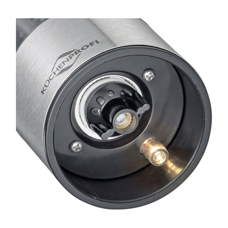 | Název položky | Küchenprofi Boston – Elektrické mlýnky na sůl a pepř s keramickým mlecím mechanismem 23×5 cm, 2 ks (stříbrné) |