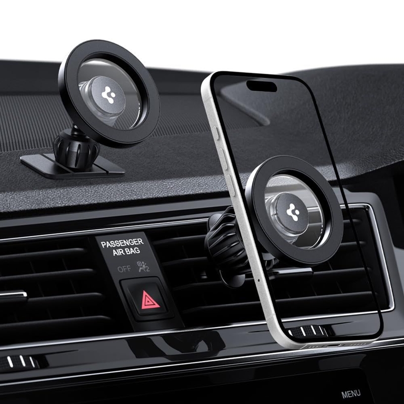The Spigen MFT13 car holder is a modern and functional solution for every driver who values comfort and safety while driving. Fully compatible with MagSafe technology, the holder provides instant and stable mounting of your smartphone using a strong magnetic connection.
