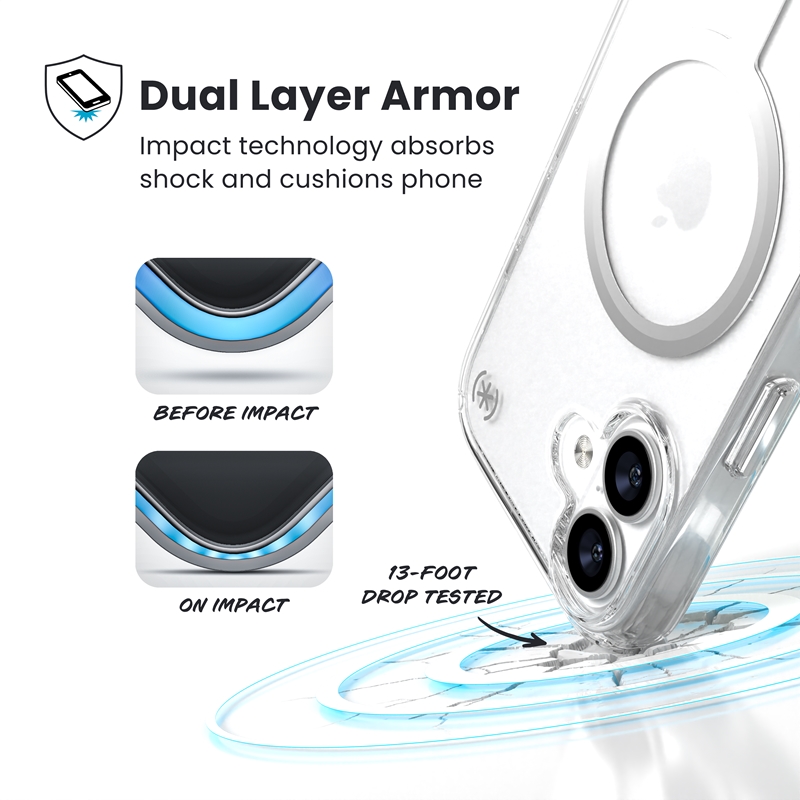 Presidio® Perfect Clear MagSafe je čiré pouzdro se zabudovaným magnetem, kompatibilní s příslušenstvím Apple MagSafe®.