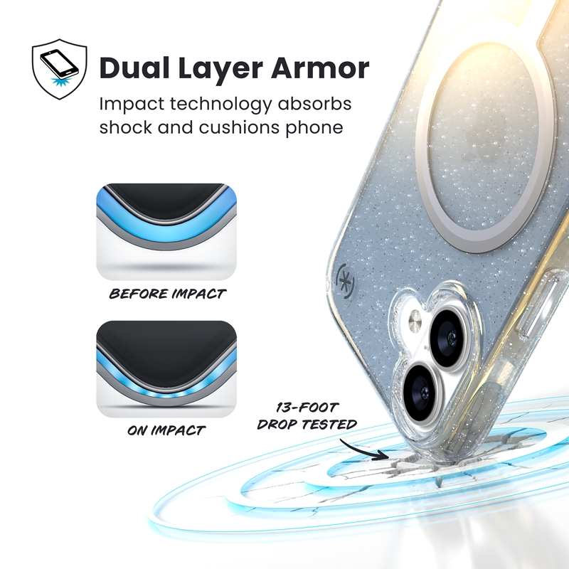 The Speck Presidio® Lux MagSafe® is a case with a built-in magnet, compatible with Apple MagSafe® accessories.