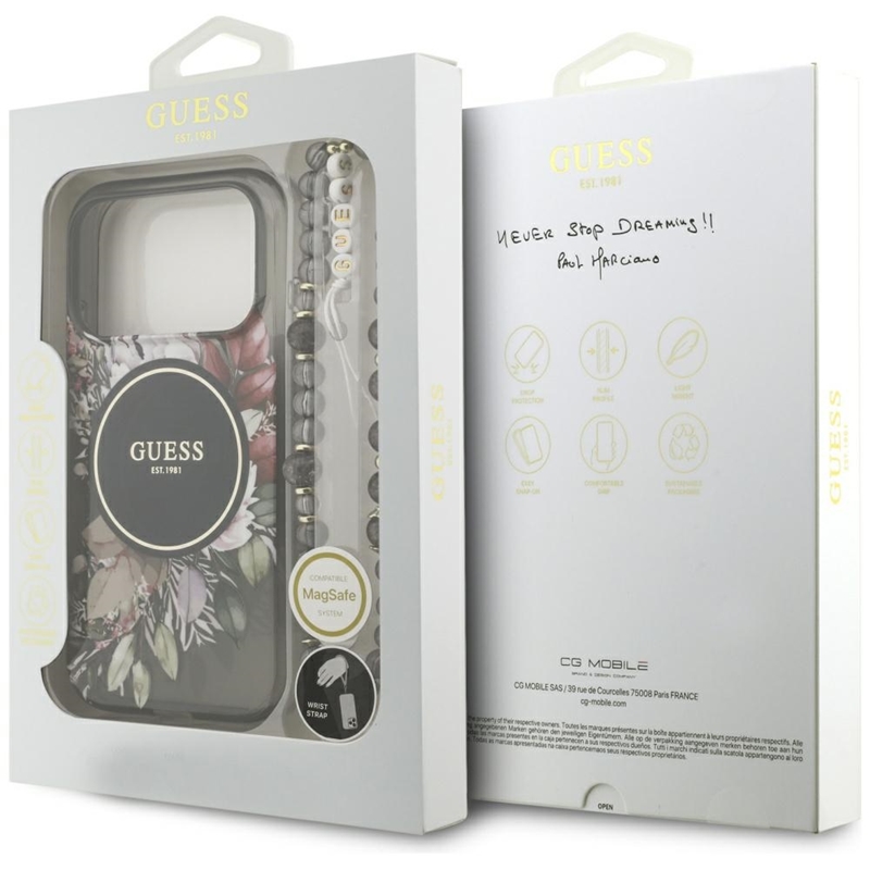 | Име на предмета | Guess IML Flowers Electro Pearl Strap MagSafe - Case iPhone 17 Pro (black) |