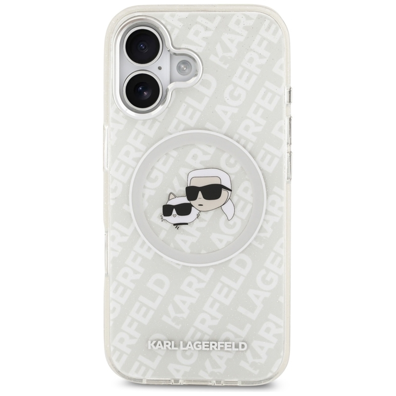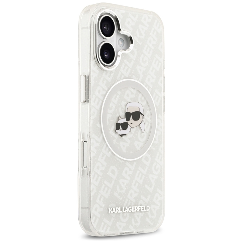 Nombre del prod.Karl Lagerfeld IML Glitter Karl & Choupette Heads Logo MagSafe - Funda para iPhone 17 (gris)