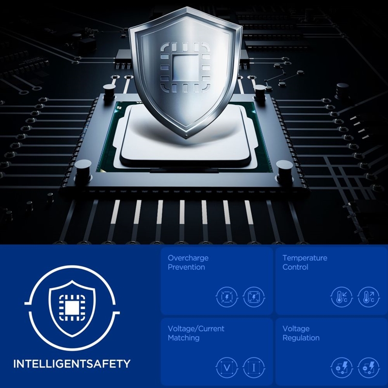 The Quantum Boost technology automatically selects charging parameters for the device, maximizing efficiency and reducing charging time. Advanced protection systems – Overcharge Prevention, Voltage Matching and Voltage Regulation – are responsible for safety and protect equipment from overcharging, incorrect voltage and overcurrent.