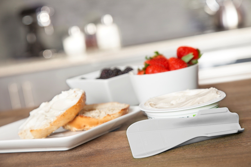 Scoop is a measuring spoon that easily converts into a spreading knife, helping you achieve perfect portions with effortless application. Scoop's curved sides, allow you to scoop up your favorite spread, and then fold down flat so you can smear it evenly or even drop the ingredients right into a bowl. Measurement lines gauge teaspoon or tablespoon serving sizes so you can always scoop up just the right amount.